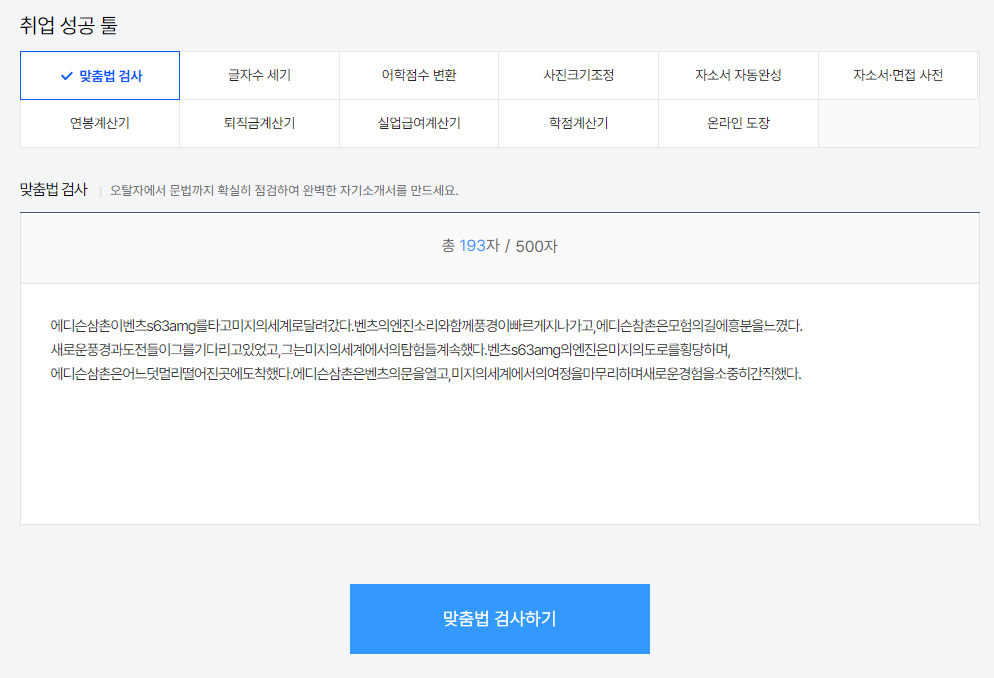이력서 및 자기소개서의 맞춤법 검사로 잡코리아 취업툴을 사용해보세요.