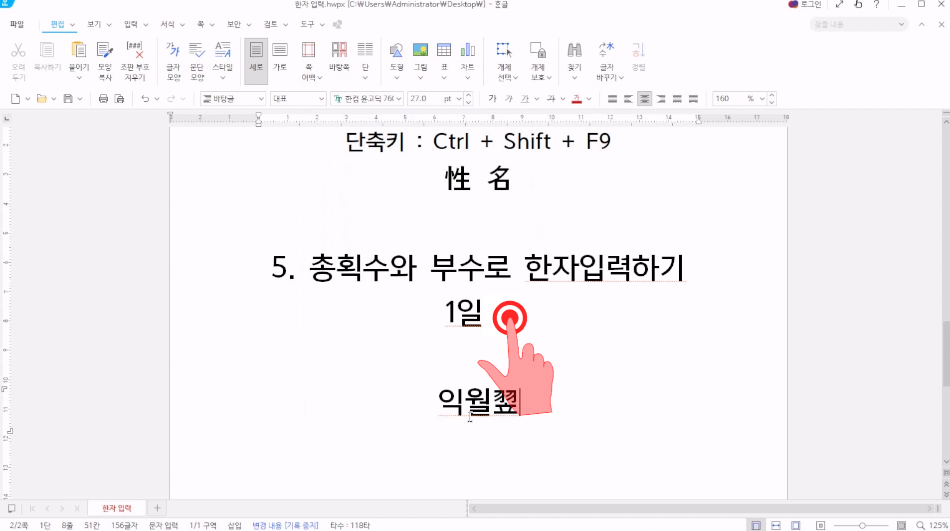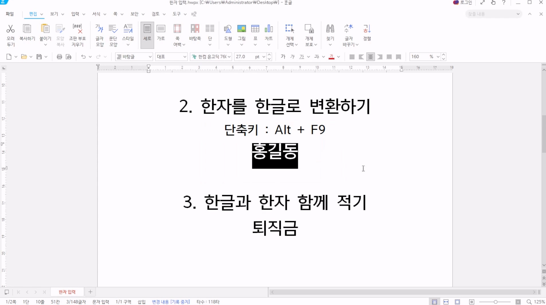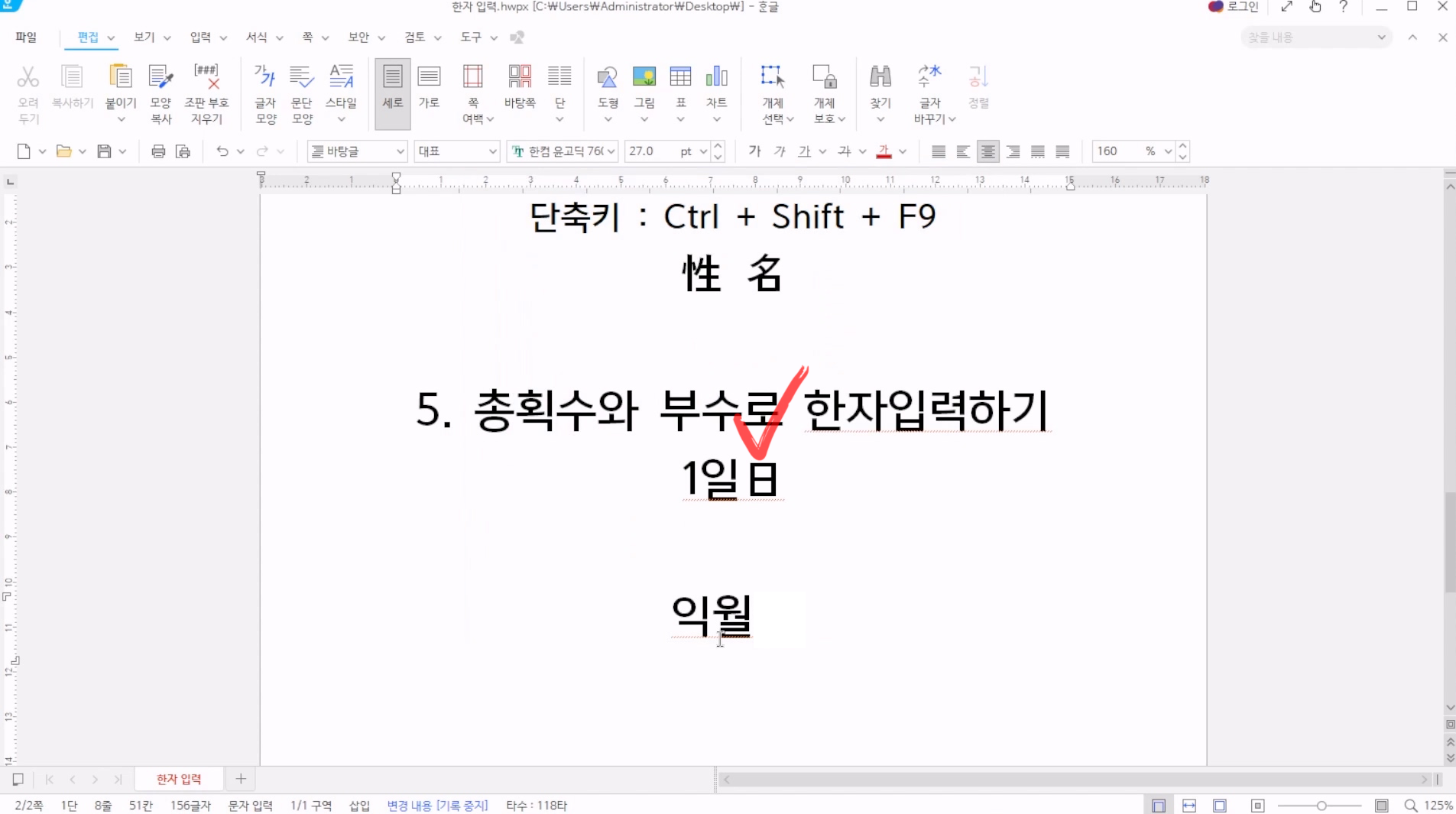 마찬가지로 한자 단어를 드레그하여 선택한 후, Alt+F9를 눌러주자.