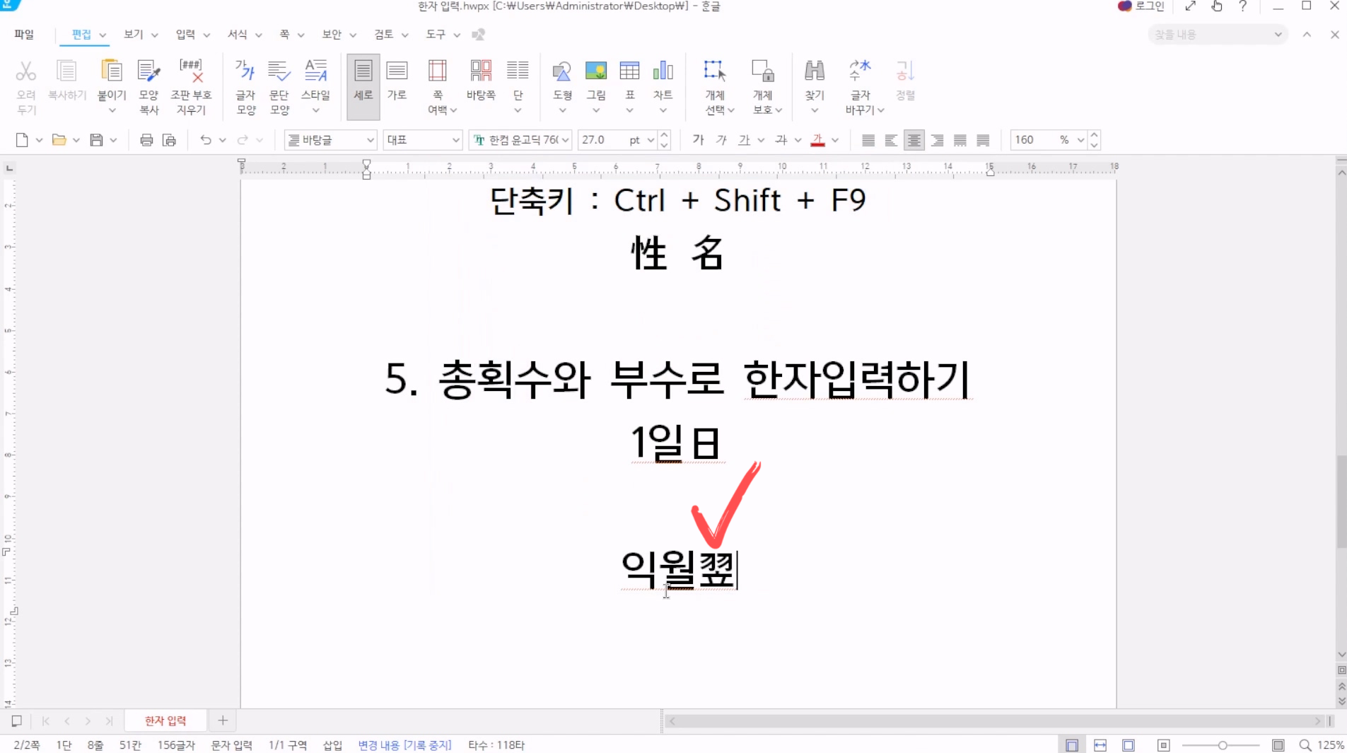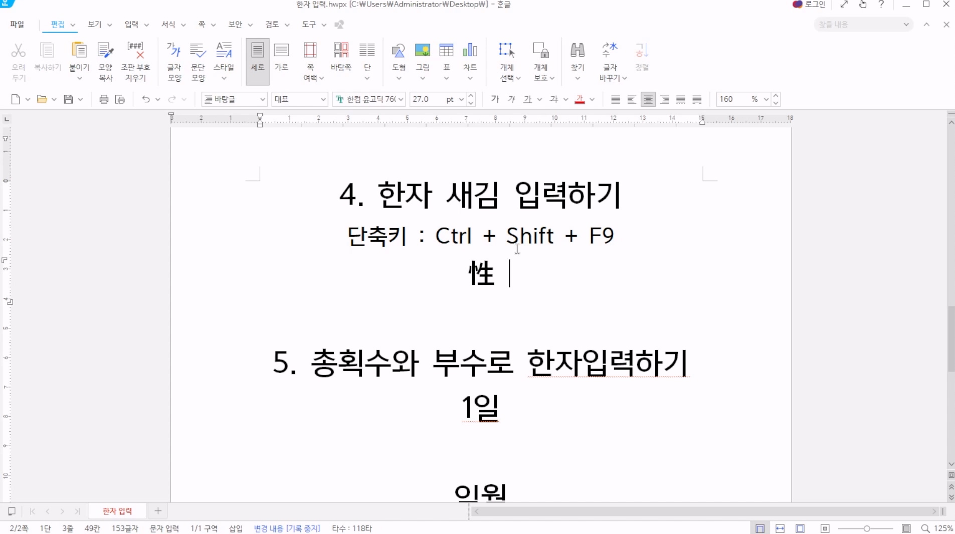그러면 한자가 입력된다.