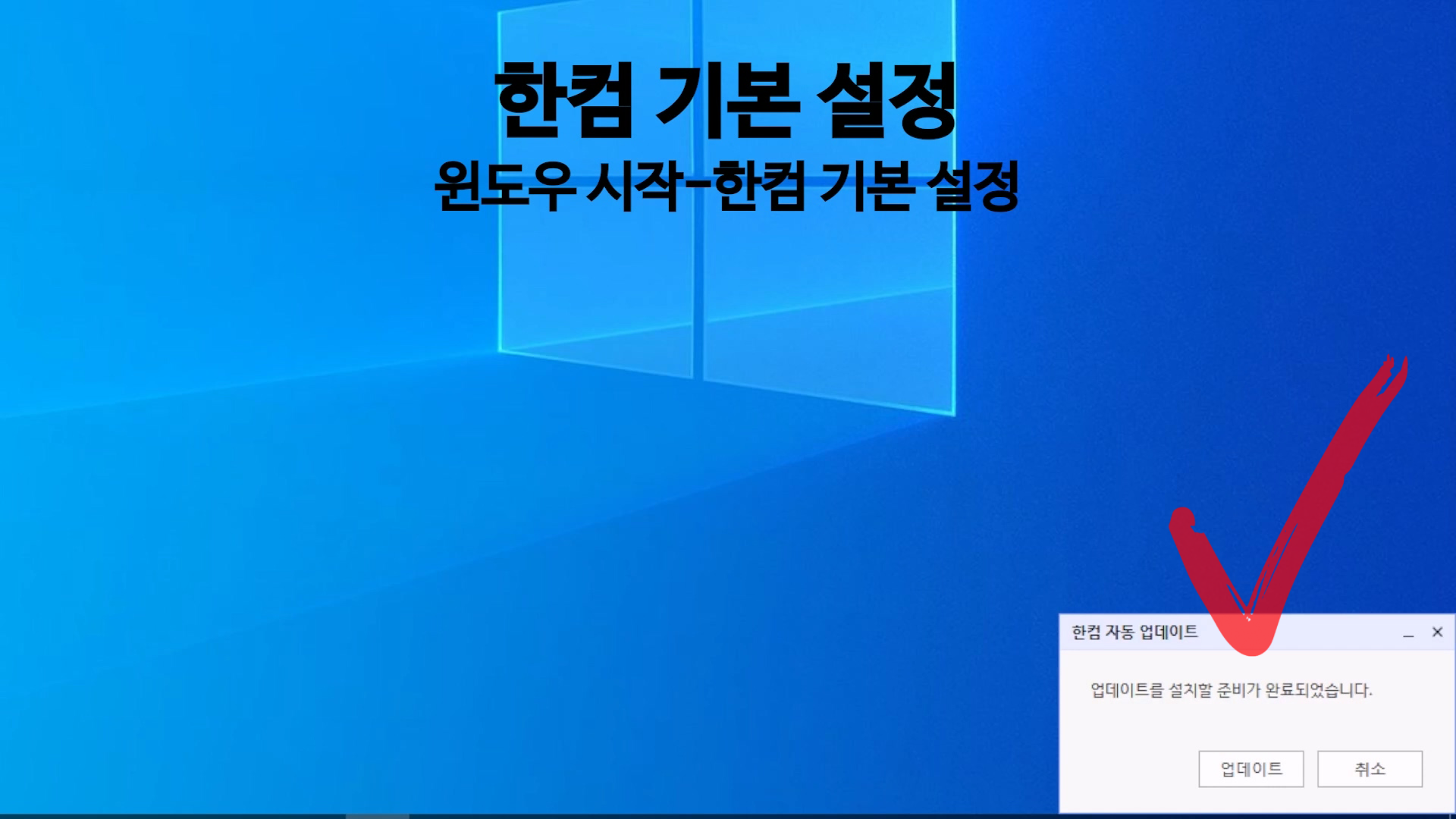 한글을 설치하고 나면 컴퓨터 바탕화면에 자동 업데이트 팝업창이 뜨는 것을 볼 수 있다.